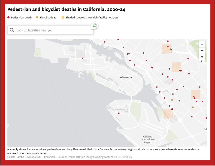 The San Francisco Chronicle recently published an article titled, “This map shows the most dangerous streets for pedestrians and bicyclists in California.” Featuring a searchable map, it spotlighted an urgent public safety issue: pedestrian and bicyclists fatalities in California.