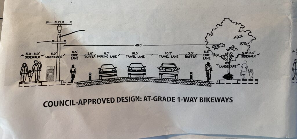 In very disappointing news, a Council majority (Mayor Ezzy Ashcraft, CM Tony Daysog, and CM Trish Herrera Spencer) voted against staff’s recommendation at the last Council meeting (recording here), and instead voted for a compromised plan that includes the latest revisions, but leaves most of the corridor with only regular, unprotected bike lanes. The revised plan includes: