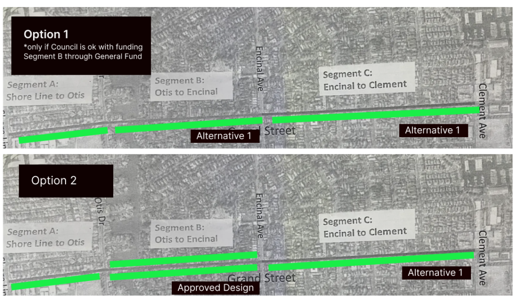 We don’t yet know what will be recommended, and what it will mean in terms of project delivery timelines. Delay is a big concern, especially since we’ve been looking forward to enjoying the safety improvements that were approved for Grand between Shore Line and Encinal this year.