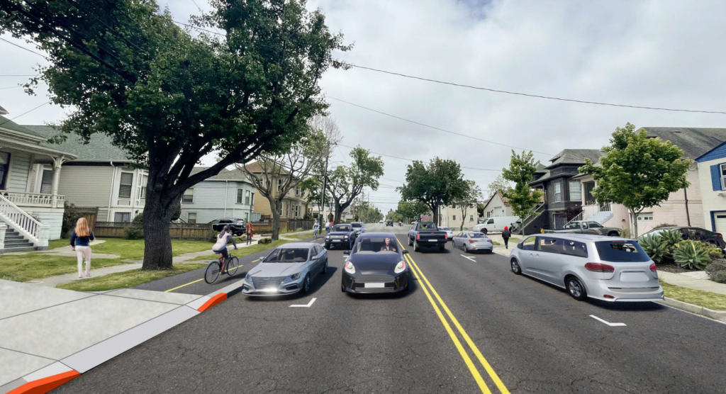 The planned traffic calming should make the maneuver even easier by reducing traffic speeds. Streets like High Street and Buena Vista have higher traffic volumes, and residents there manage with significantly less visibility and buffering than what’s proposed for Grand.